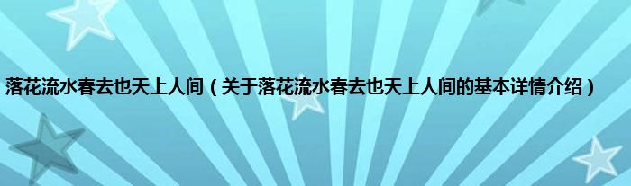 本文关于落花流水春去也天上人间的基本详情介绍就讲解完毕,希望对大家有所帮助。