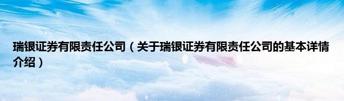 本文关于瑞银证券有限责任公司的基本详情介绍就讲解完毕,希望对大家有所帮助。