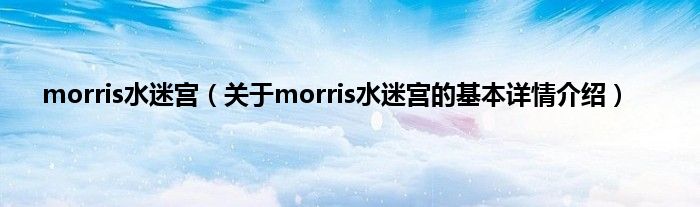 本文关于morris水迷宫的基本详情介绍就讲解完毕,希望对大家有所帮助。