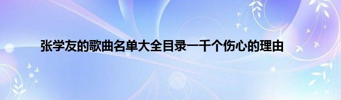 大家好,小问来为大家解答以上问题。张学友的歌曲名单大全目录一千个伤心的理由这个很多人还不知道,现在让我们一起来看看吧!