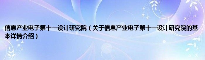 本文关于信息产业电子第十一设计研究院的基本详情介绍就讲解完毕,希望对大家有所帮助。