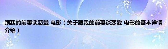 跟我的前妻谈恋爱 电影(关于跟我的前妻谈恋爱 电影的基本详情介绍)
