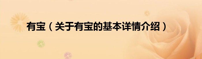本文关于有宝的基本详情介绍就讲解完毕,希望对大家有所帮助。