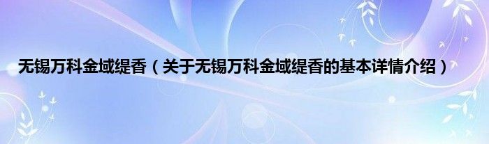 本文关于无锡万科金域缇香的基本详情介绍就讲解完毕,希望对大家有所帮助。