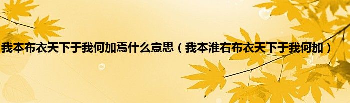 以上就是【我本布衣天下于我何加焉什么意思,我本淮右布衣天下于我何加】相关内容。