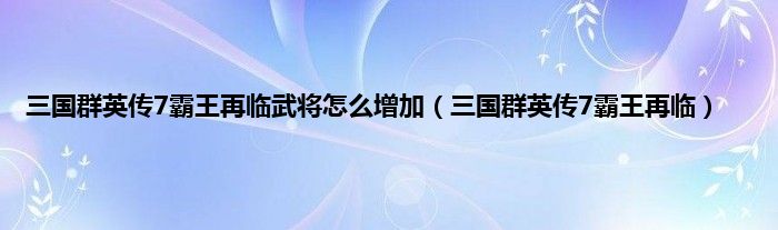 以上就是【三国群英传7霸王再临武将怎么增加,三国群英传7霸王再临】相关内容。
