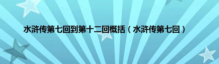 大家好,小问来为大家解答以上问题。水浒传第七回到第十二回概括,水浒传第七回这个很多人还不知道,现在让我们一起来看看吧!