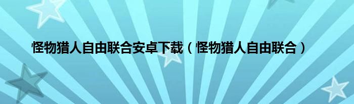 大家好,小问来为大家解答以上问题。怪物猎人自由联合安卓下载,怪物猎人自由联合这个很多人还不知道,现在让我们一起来看看吧!