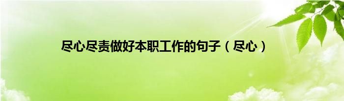 以上就是【尽心尽责做好本职工作的句子,尽心】相关内容。