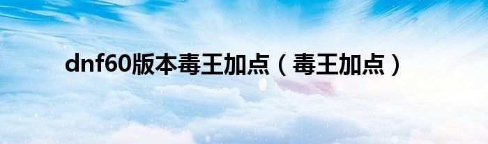 以上就是【dnf60版本毒王加点,毒王加点】相关内容。