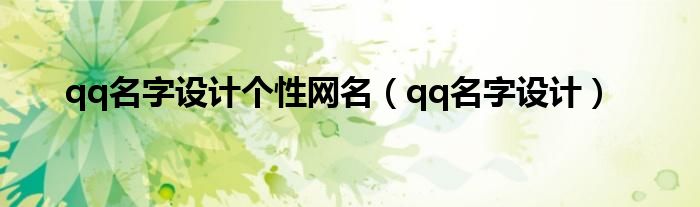 大家好,小问来为大家解答以上问题。qq名字设计个性网名,qq名字设计这个很多人还不知道,现在让我们一起来看看吧!
