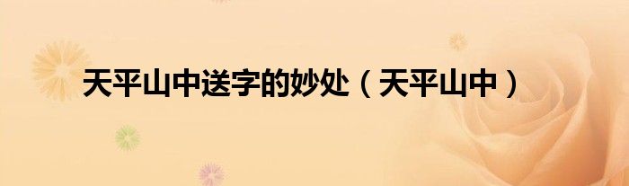 以上就是【天平山中送字的妙处,天平山中】相关内容。