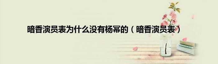 以上就是【暗香演员表为什么没有杨幂的,暗香演员表】相关内容。