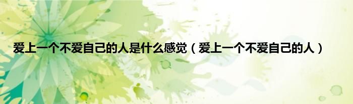 大家好,小问来为大家解答以上问题。爱上一个不爱自己的人是什么感觉,爱上一个不爱自己的人这个很多人还不知道,现在让我们一起来看看吧!