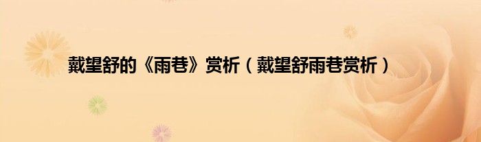 以上就是【戴望舒的《雨巷》赏析,戴望舒雨巷赏析】相关内容。
