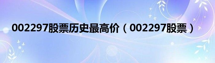 大家好,小问来为大家解答以上问题。002297股票历史最高价,002297股票这个很多人还不知道,现在让我们一起来看看吧!
