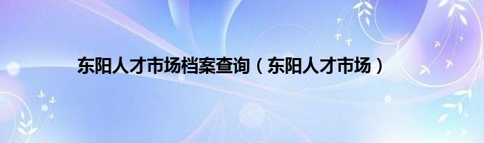 以上就是【东阳人才市场档案查询,东阳人才市场】相关内容。