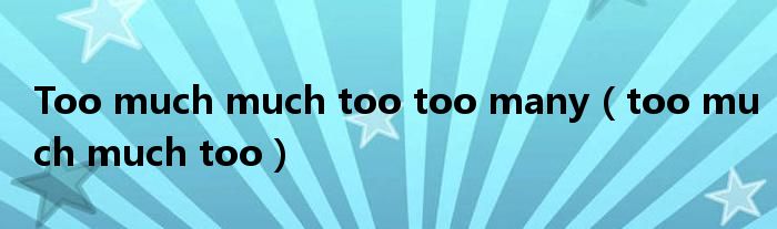 大家好,小问来为大家解答以上问题。Too much much too too many,too much much too这个很多人还不知道,现在让我们一起来看看吧!