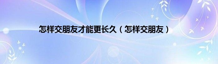 以上就是【怎样交朋友才能更长久,怎样交朋友】相关内容。