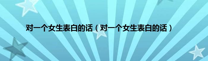 大家好,小问来为大家解答以上问题。对一个女生表白的话,对一个女生表白的话这个很多人还不知道,现在让我们一起来看看吧!