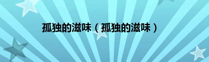 大家好,小问来为大家解答以上问题。孤独的滋味,孤独的滋味这个很多人还不知道,现在让我们一起来看看吧!