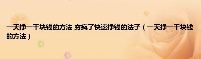 以上就是【一天挣一千块钱的方法 穷疯了快速挣钱的法子,一天挣一千块钱的方法】相关内容。