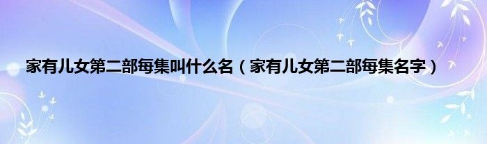 大家好,小问来为大家解答以上问题。家有儿女第二部每集叫什么名,家有儿女第二部每集名字这个很多人还不知道,现在让我们一起来看看吧!