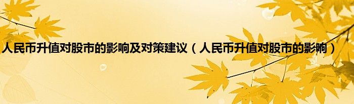 以上就是【人民币升值对股市的影响及对策建议,人民币升值对股市的影响】相关内容。