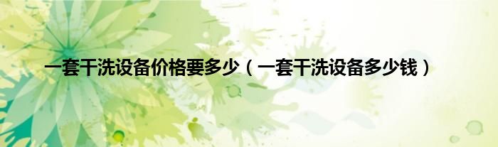 以上就是【一套干洗设备价格要多少,一套干洗设备多少钱】相关内容。