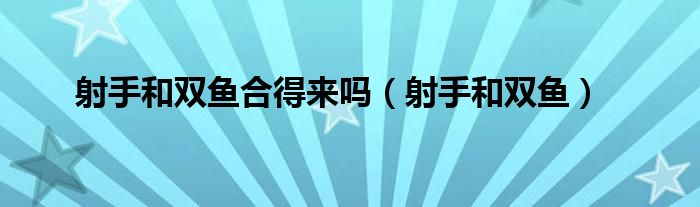大家好,小问来为大家解答以上问题。射手和双鱼合得来吗,射手和双鱼这个很多人还不知道,现在让我们一起来看看吧!