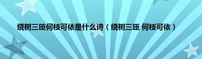 大家好,小问来为大家解答以上问题。绕树三匝何枝可依是什么诗,绕树三匝 何枝可依这个很多人还不知道,现在让我们一起来看看吧!
