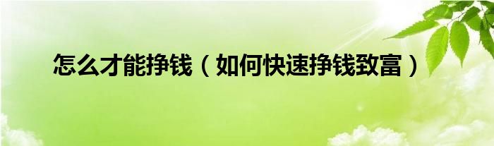 以上就是【怎么才能挣钱,如何快速挣钱致富】相关内容。