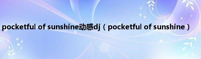 以上就是【pocketful of sunshine动感dj,pocketful of sunshine】相关内容。