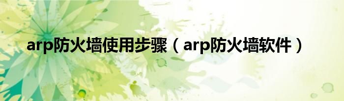 大家好,小问来为大家解答以上问题。arp防火墙使用步骤,arp防火墙软件这个很多人还不知道,现在让我们一起来看看吧!