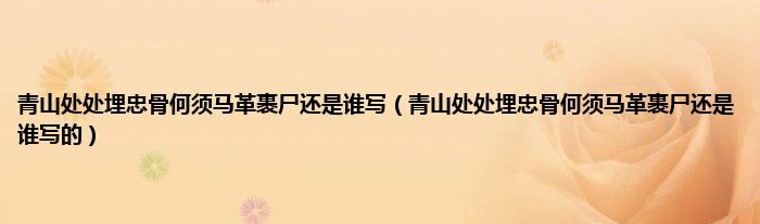 1、青山到处都埋葬着忠诚的战士的尸骨,又何必要用马皮把尸体包裹起来运回家乡呢? 马革裹尸”出自《后汉书.马援传》,东汉名将马援曾说“男儿要当死于边野,以马革裹尸还葬耳。