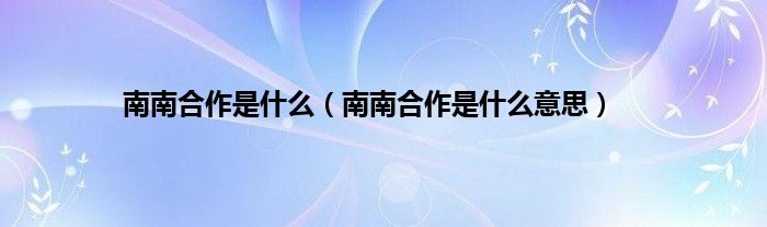 以上就是【南南合作是什么,南南合作是什么意思】相关内容。