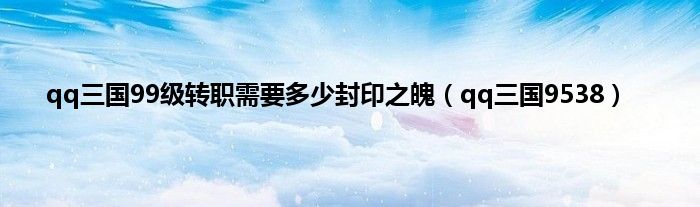 大家好,小问来为大家解答以上问题。qq三国99级转职需要多少封印之魄,qq三国9538这个很多人还不知道,现在让我们一起来看看吧!