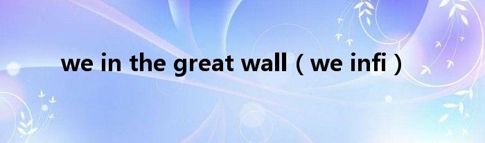 大家好,小问来为大家解答以上问题。we in the great wall,we infi这个很多人还不知道,现在让我们一起来看看吧!
