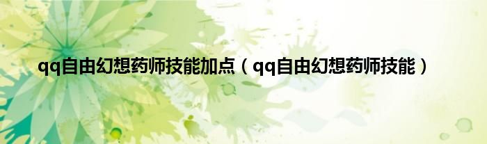 以上就是【qq自由幻想药师技能加点,qq自由幻想药师技能】相关内容。