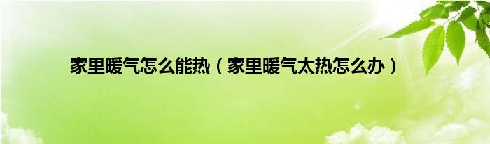 大家好,小问来为大家解答以上问题。家里暖气怎么能热,家里暖气太热怎么办这个很多人还不知道,现在让我们一起来看看吧!