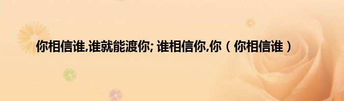 以上就是【你相信谁,谁就能渡你; 谁相信你,你,你相信谁】相关内容。