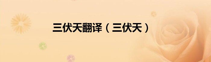 大家好,小问来为大家解答以上问题。三伏天翻译,三伏天这个很多人还不知道,现在让我们一起来看看吧!
