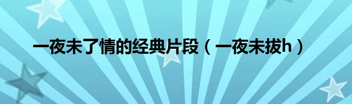大家好,小问来为大家解答以上问题。一夜未了情的经典片段,一夜未拔h这个很多人还不知道,现在让我们一起来看看吧!