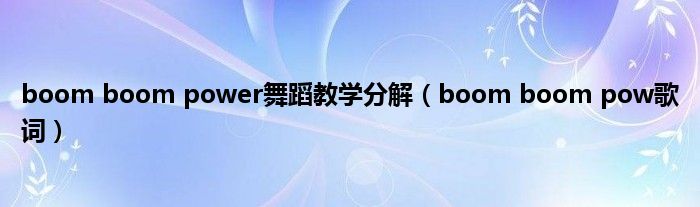 以上就是【boom boom power舞蹈教学分解,boom boom pow歌词】相关内容。