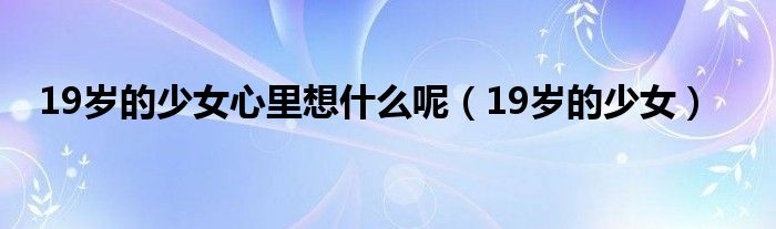 大家好,小问来为大家解答以上问题。19岁的少女心里想什么呢,19岁的少女这个很多人还不知道,现在让我们一起来看看吧!