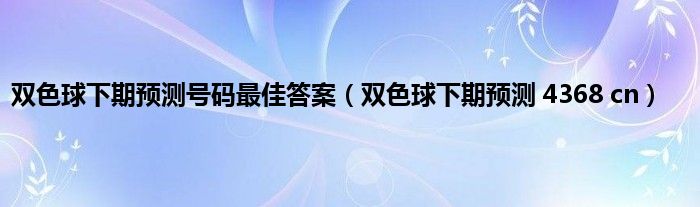 大家好,小问来为大家解答以上问题。双色球下期预测号码最佳答案,双色球下期预测 4368 cn这个很多人还不知道,现在让我们一起来看看吧!