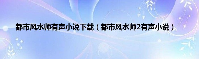 大家好,小问来为大家解答以上问题。都市风水师有声小说下载,都市风水师2有声小说这个很多人还不知道,现在让我们一起来看看吧!