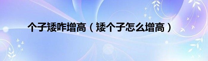 本文,个子矮咋增高,矮个子怎么增高到此就分享完毕,希望对大家有所帮助。