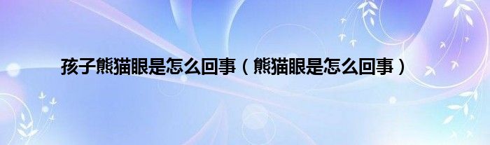 本文,孩子熊猫眼是怎么回事,熊猫眼是怎么回事到此就分享完毕,希望对大家有所帮助。
