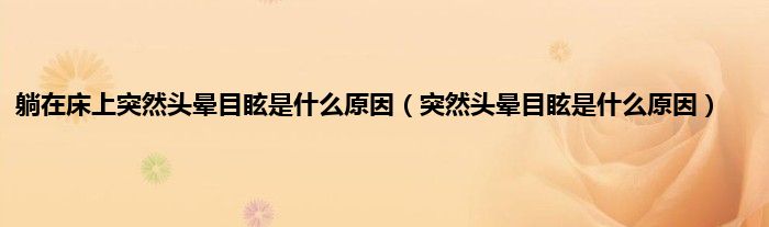大家好,躺在床上突然头晕目眩是什么原因,突然头晕目眩是什么原因很多人还不知道,现在让我们一起来看看吧!